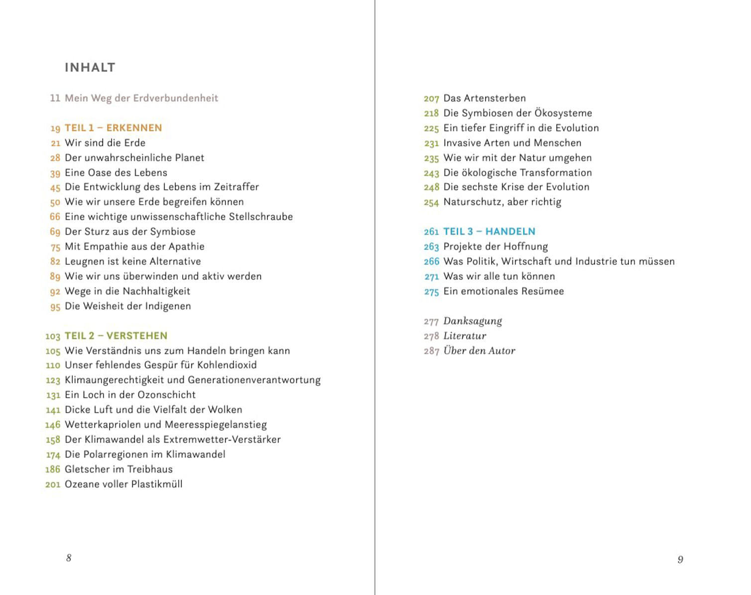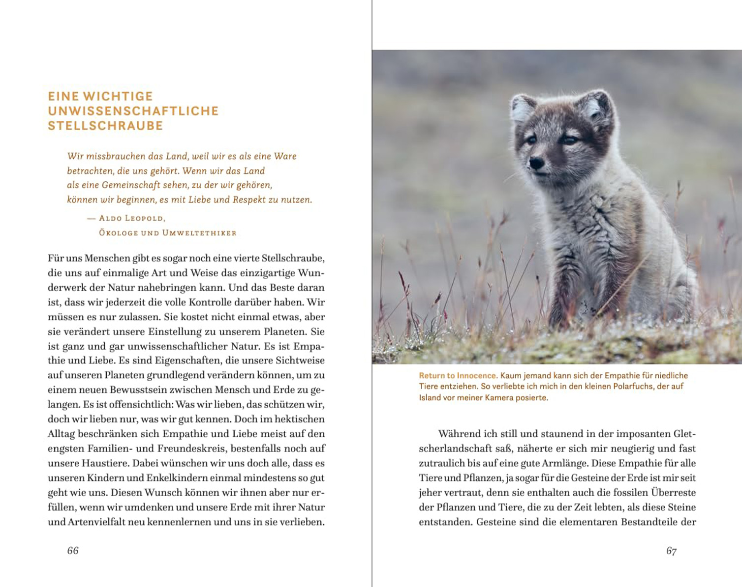 Die zahlreichen farbigen Fotografien des Autors rücken die Schönheit und Verletzlichkeit unserer Erde in den Mittelpunkt und zeigen auf imposante Art und Weise, was es dringend zu schützen gilt.